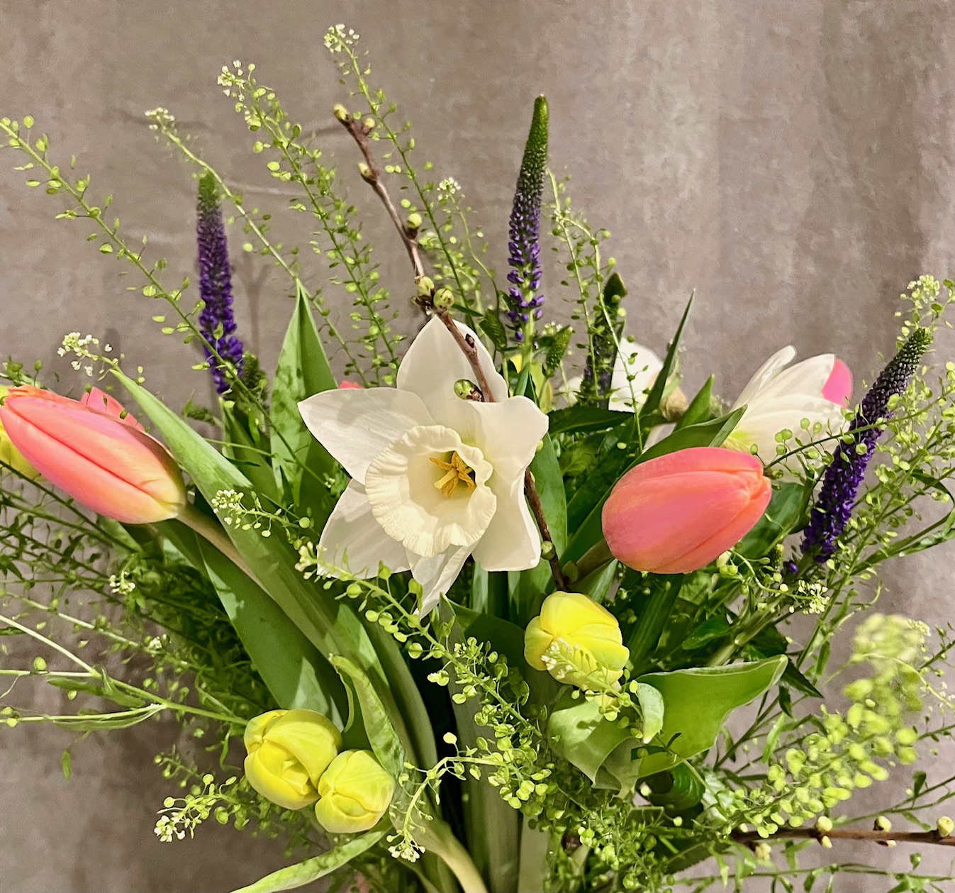 Vi skapar med krispiga tulpaner, vårens kvistar och andra vackra vårblommor som piggar upp oss rejält.